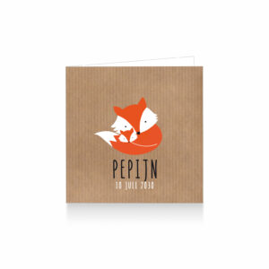 096-trendy geboortekaartje voor een jongen van mama en baby vos op kraft karton met witte sterren