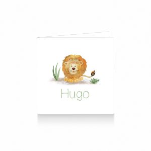 1273-Leuk waterverf dieren geboortekaartje voor een jongen met een geschilderd leeuwtje op een witte achtergrond
