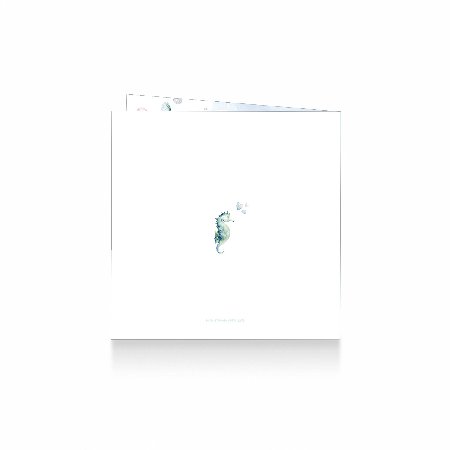 1712-Trendy onderwaterwereld waterverf geboortekaartje voor een meisje met handgeschilderde zeedieren zoals een zeeschildpad, zeepaardje, een schol vissen, kwallen en koraal in een oceaan op een aquarel achtergrond. aantal