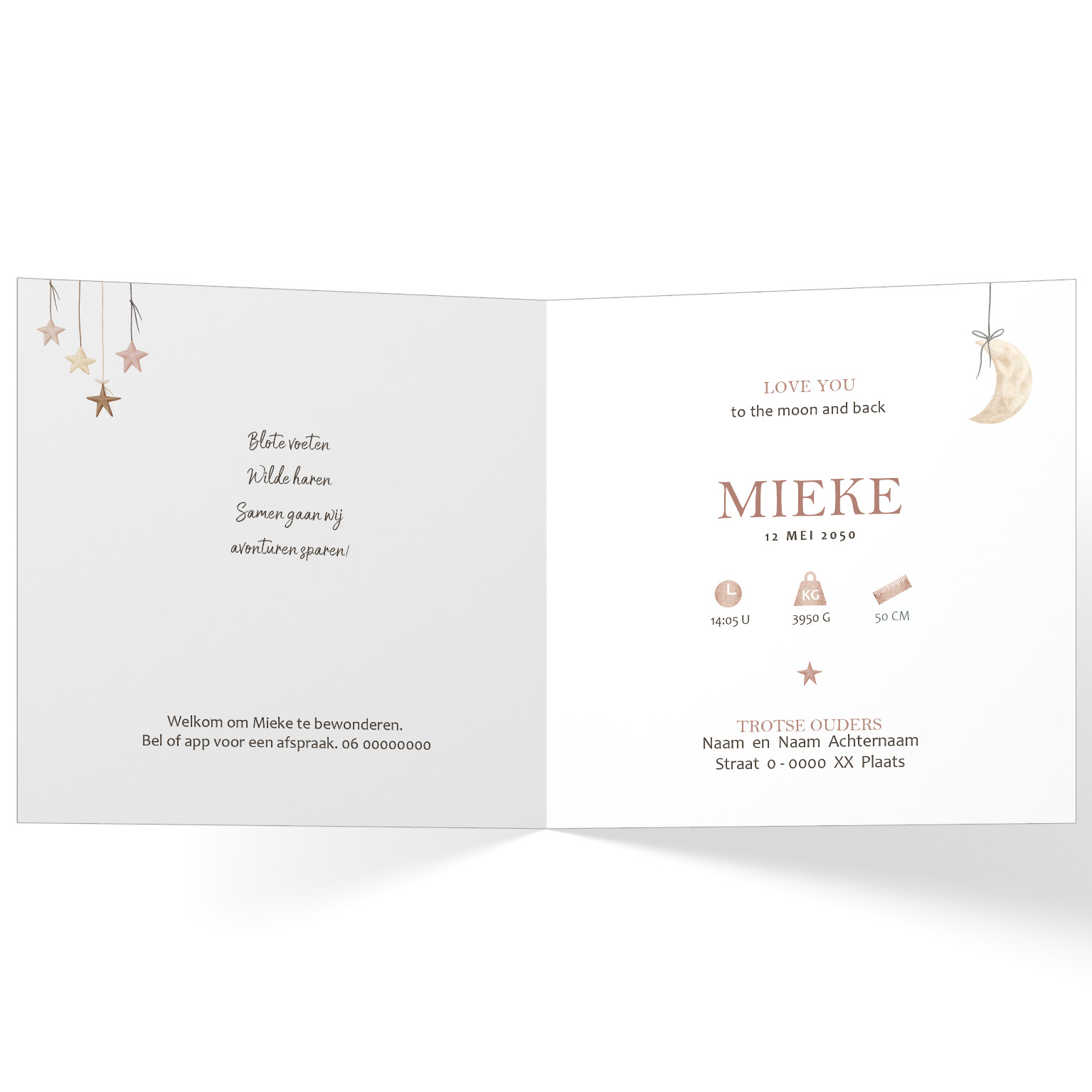1881-Rustig droom geboortekaartje voor een meisje uit de collectie Ocean Dream. Op dit prachtige kaartje zie je een waterverf luchtballon tussen wolken en sterren op een oudroze verweerde achtergrond. aantal
